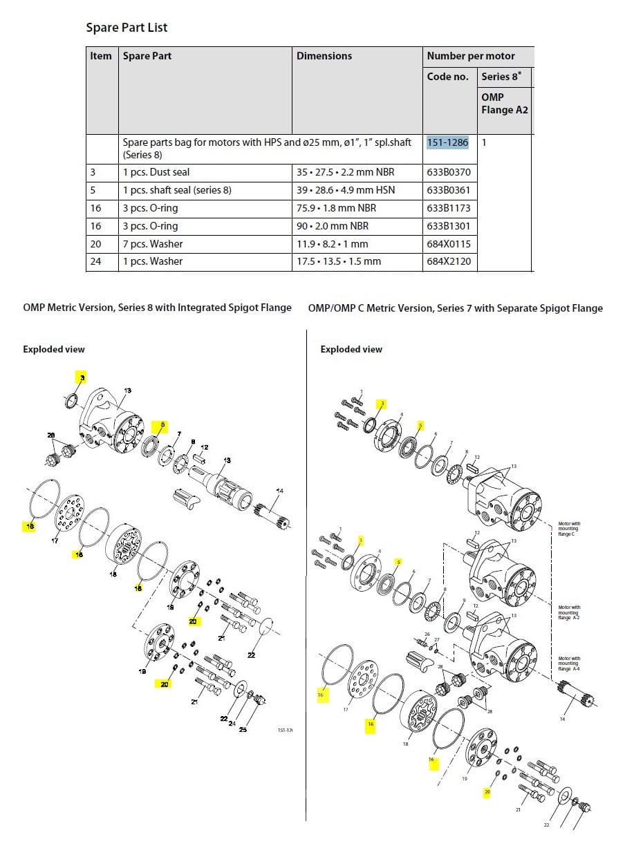 Komplet uszczelnień zestaw uszczelnień uszczelnienia uszczelnienie uszczelki uszczelniacze do silnika hydraulicznego silników hydraulicznych Sauer Danfoss 151-1286 1511286 OMP , DH , OMR , DS