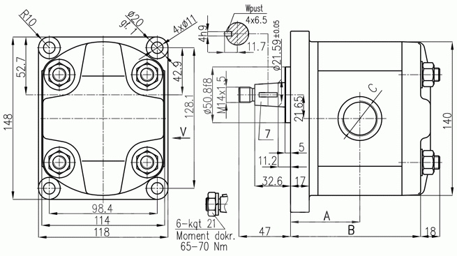 Pompa hydrauliczna zębata WPH Wrocław 3PZ4-52/20-2-77G