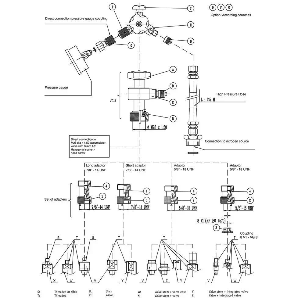 Zestaw zestawy do ładowania nabijania napełniania sprawdzania akumulatorów hydraulicznych akumulatora hydraulicznego Parker 20214122833 VGU/F.25/250.8.TS3.3 72846493 VGU/F,25/250,8.TS3,3 VGU/F25/2508TS33 VGUF252508TS33